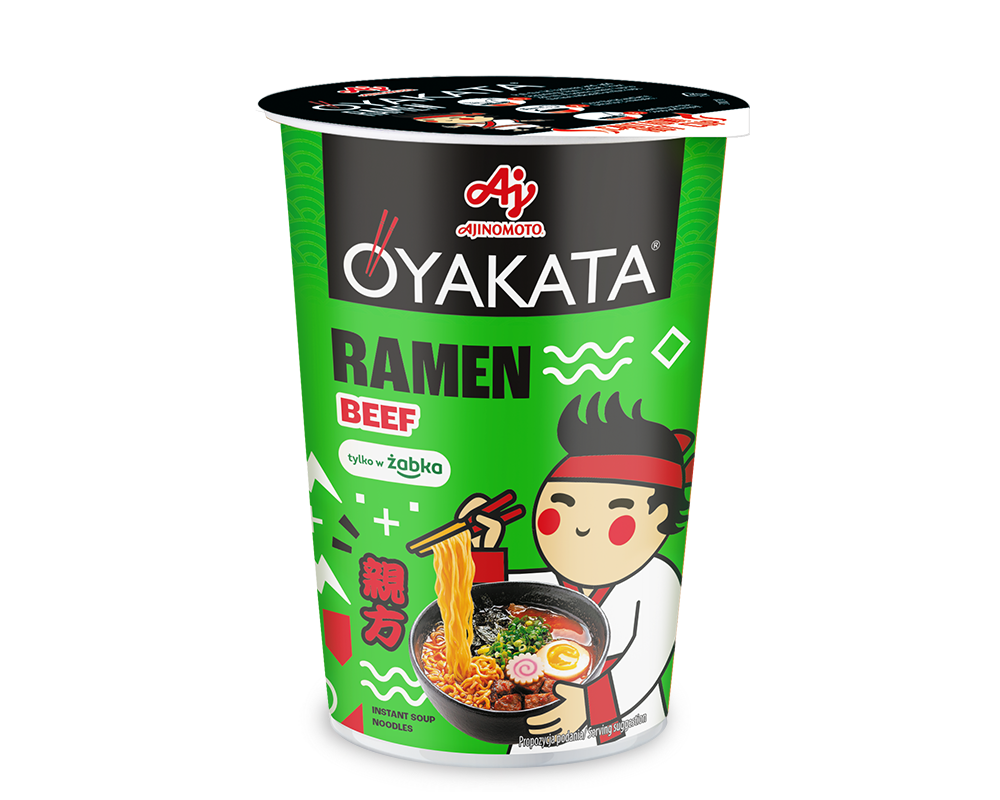 Zupy OYAKATA RAMEN w kubkach, pełne wyselekcjonowanych ziół i przypraw oraz kawałków warzyw pozwalają odkryć oryginalne japońskie smaki prosto z Kraju Kwitnącej Wiśni. OYAKATA Chicken to tradycyjny, aromatyczny japoński bulion z kurczaka wzbogacony imbirem i sezamem. OYAKATA Miso to zupa na bazie pasty sojowej, imbiru i chilli. OYAKATA RAMEN Soya souce to japońska zupa z makaronem pełna sojowego smaku. OYAKATA Pork Ramen to tradycyjny japoński bulion wieprzowy z sezamem i imbirem.